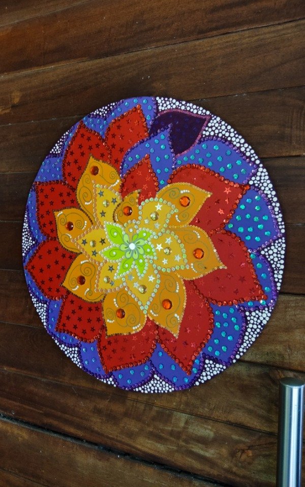 Mandala de 50cm de diámetro, realizado con la técnica de, Arte Hindu