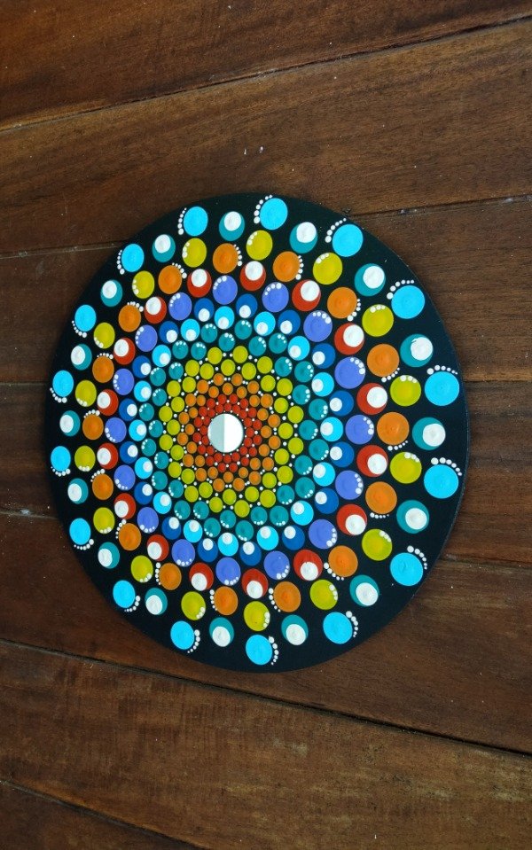 Mandala de 30cm de diámetro, realizado con la técnica de puntillismo